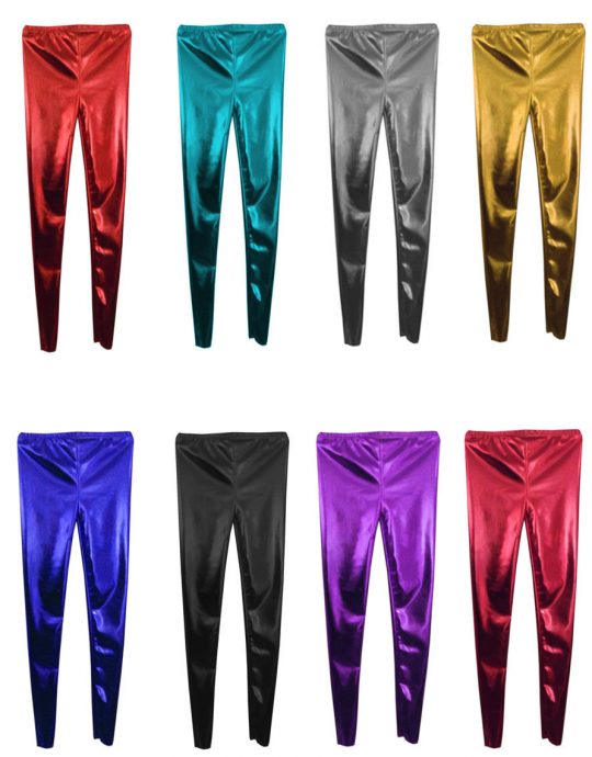 Kids LADIES WOMEN’S GIRLS Disco Metallic Shiny Pant Dance *Leggings* Footless